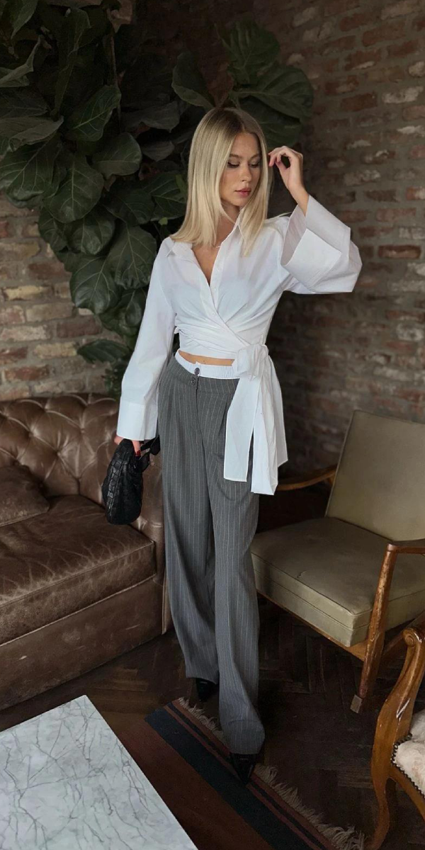 Gri Çizgili Boxer Kumaş Pantolon