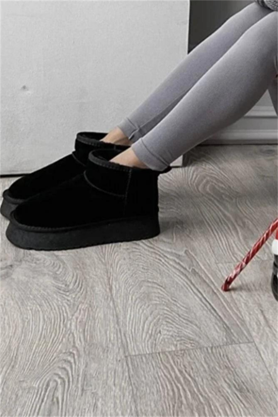 Ugi Mini Süet Siyah İçi Kürklü Kalın Taban Kadın Bot (ESF-180925-186)