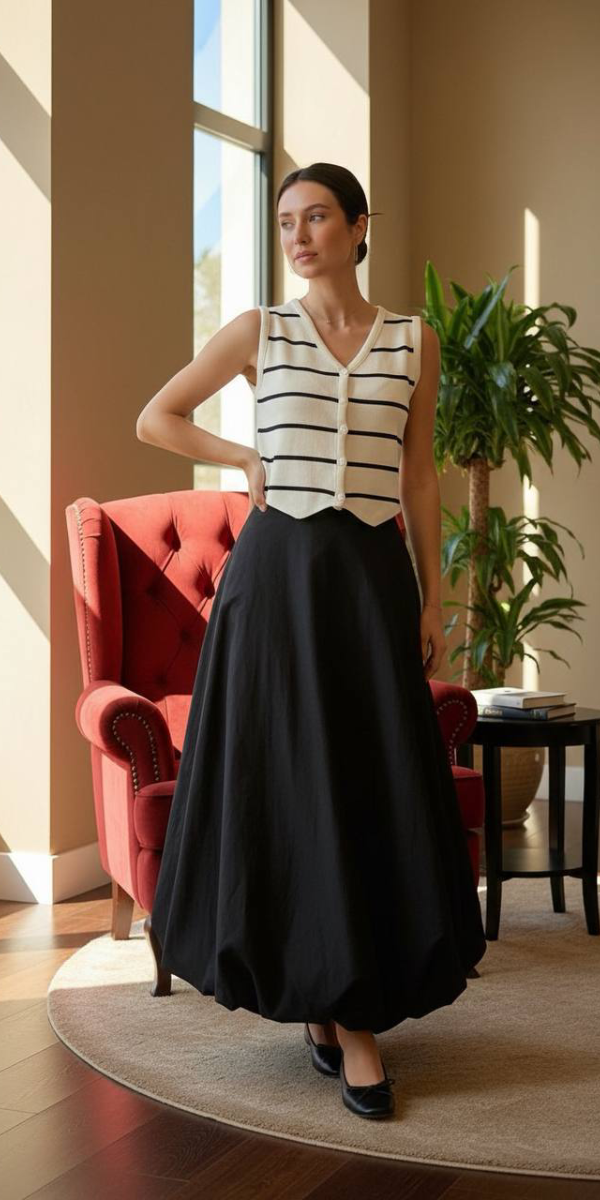 Hacimli formu ve modern kesimiyle hem günlük hem davet kombinlerinde güçlü bir silüet oluşturur. Crop üst, gömlek veya blazer ile kolayca kombinlenebilir.