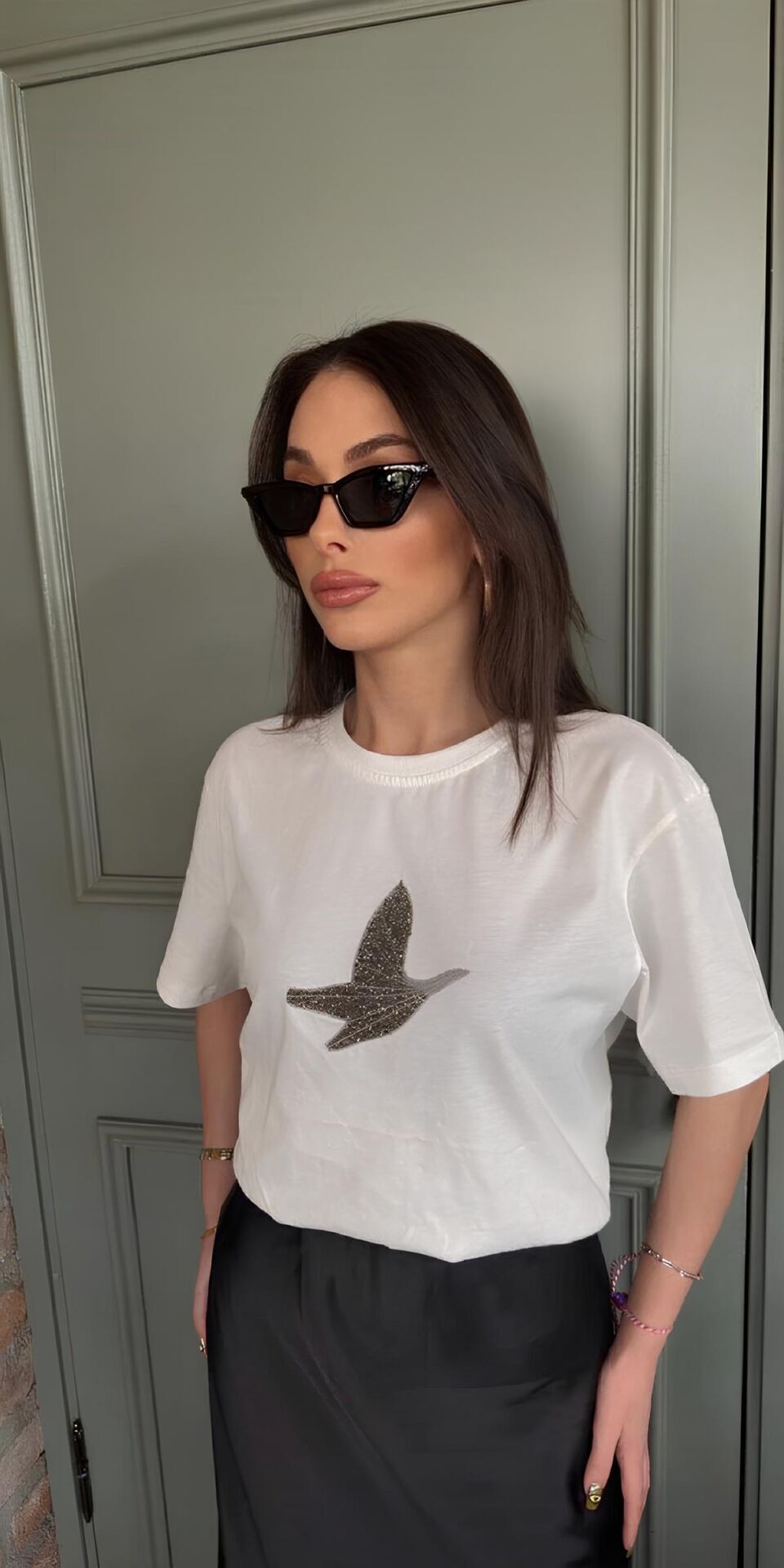Işıltılı taş ve nakış detaylarıyla günlük kombinlere lüks bir dokunuş katar. Jean veya şortlarla rahatlıkla kombinlenebilir.