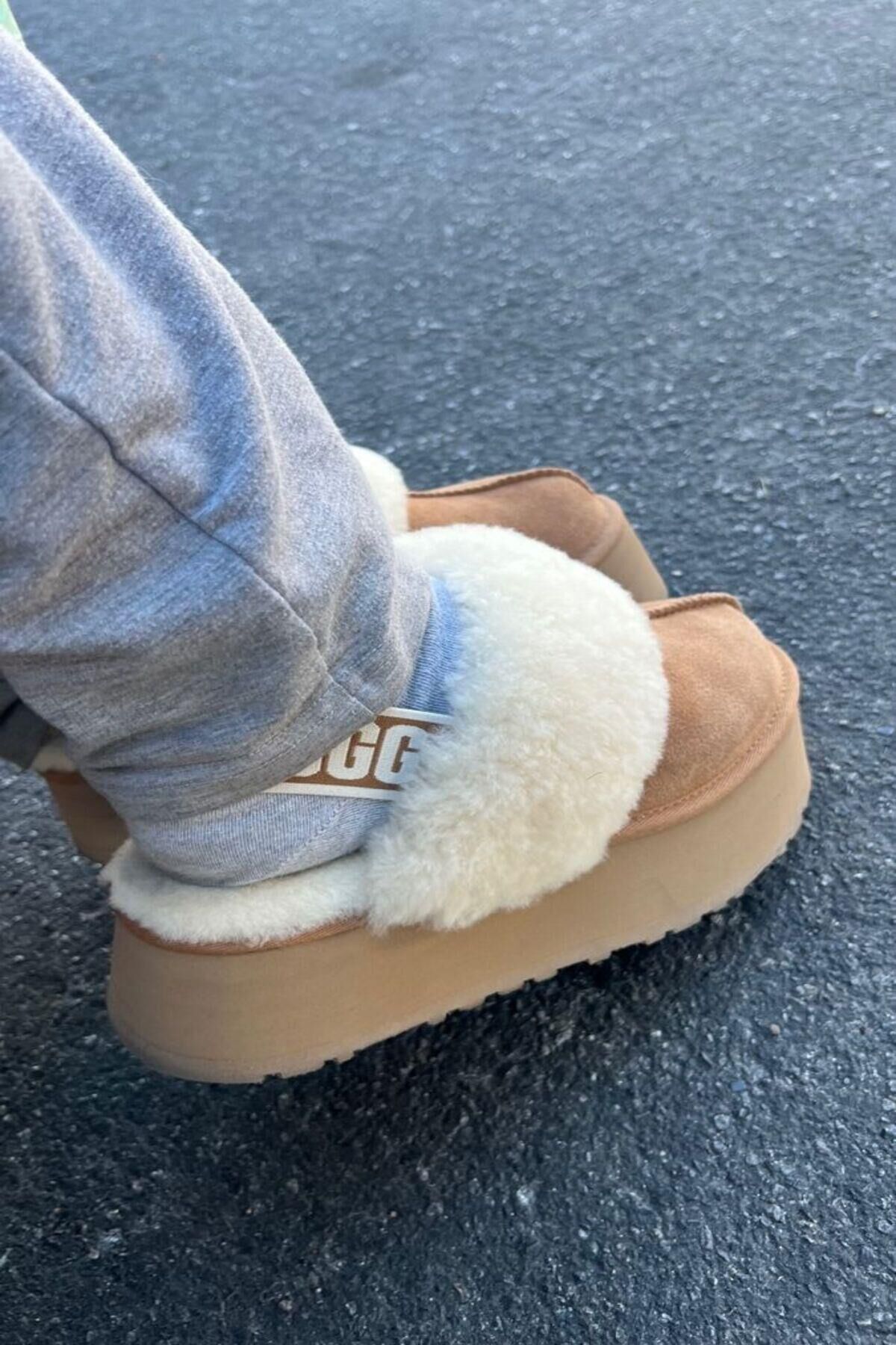 Taba Funkette Stil Kalın Tabanlı Kürklü Mini Bot - İçi Yünlü Sıcak Tutan Premium Deri