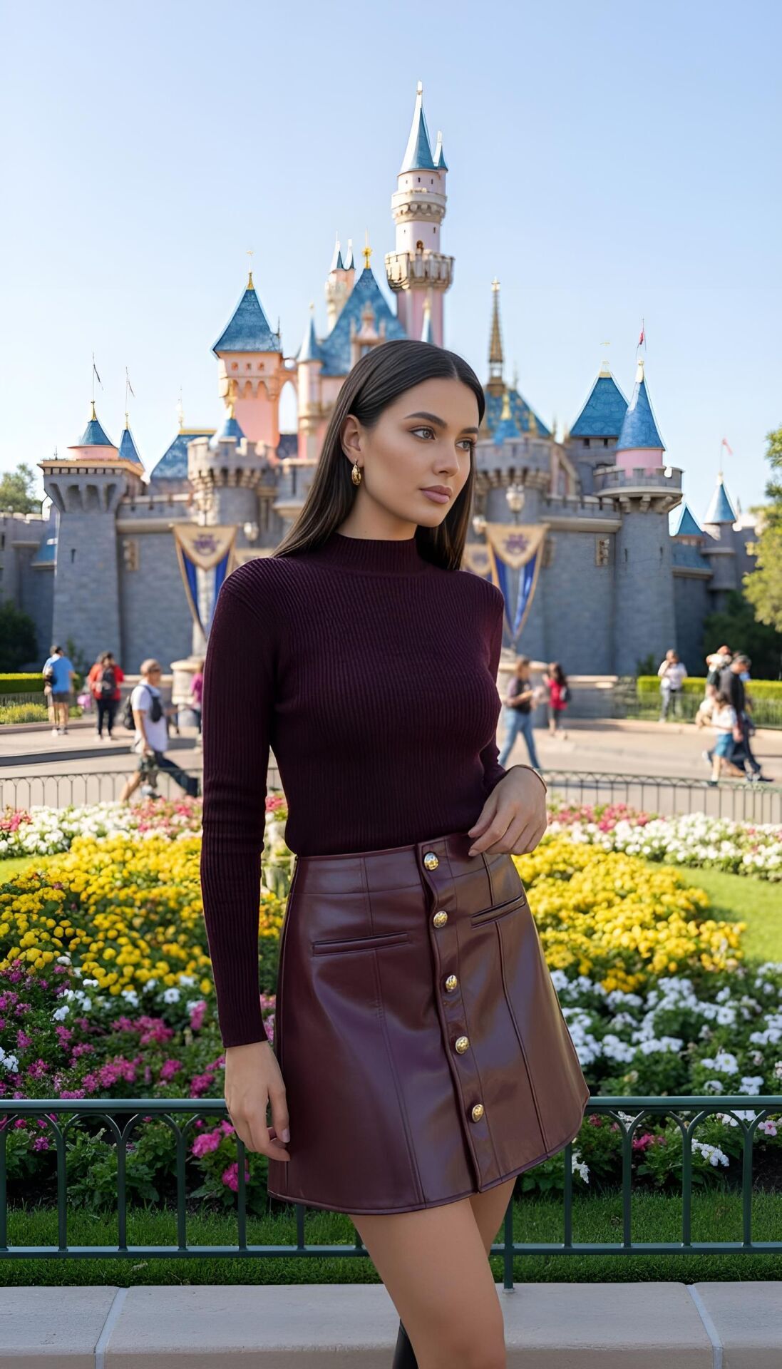 Yüksek bel kesimi ve gold düğme detaylarıyla bel hattını vurgulayan modern bir mini etek tasarımıdır. Triko kazak ve çizmelerle kombinlenerek şık ve güçlü bir kış görünümü oluşturur.