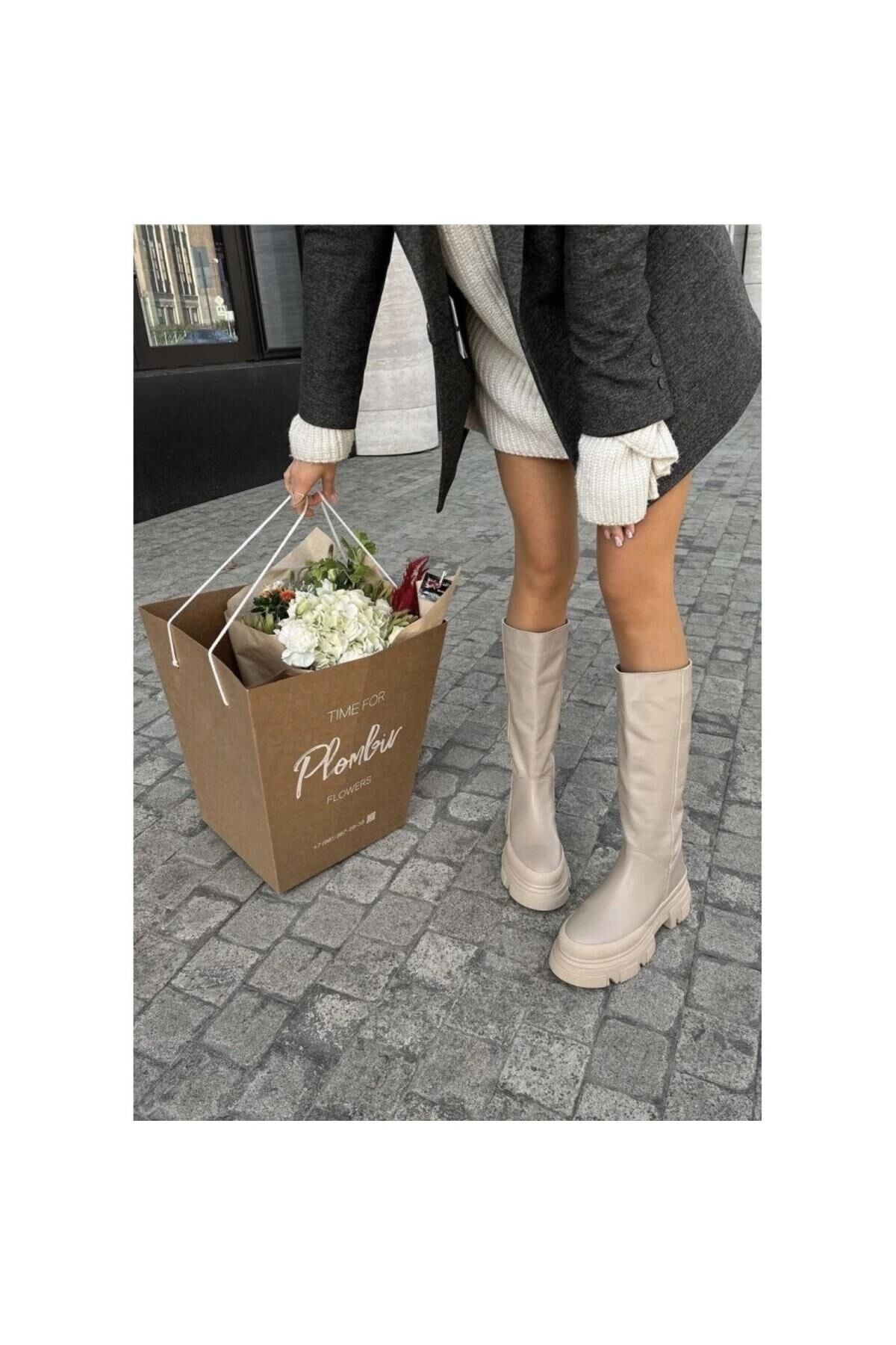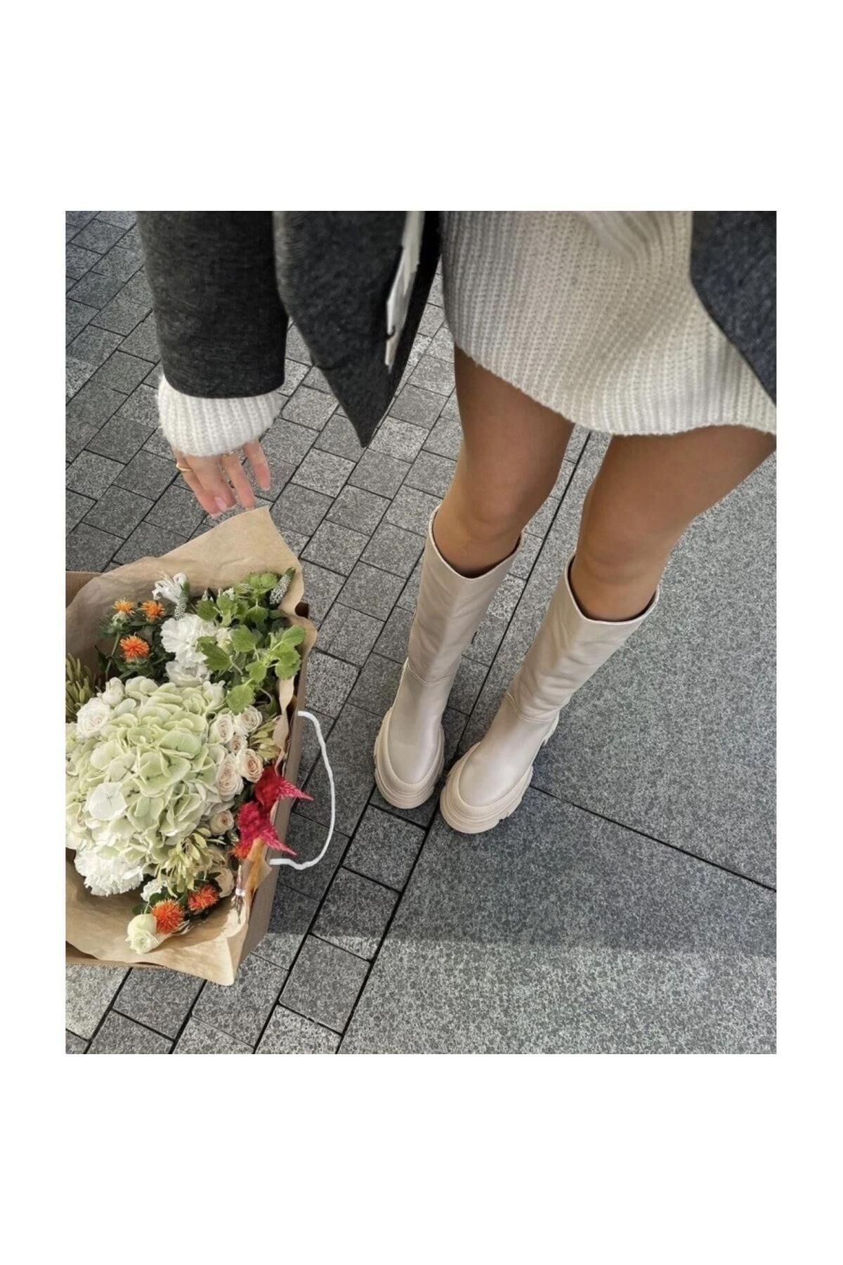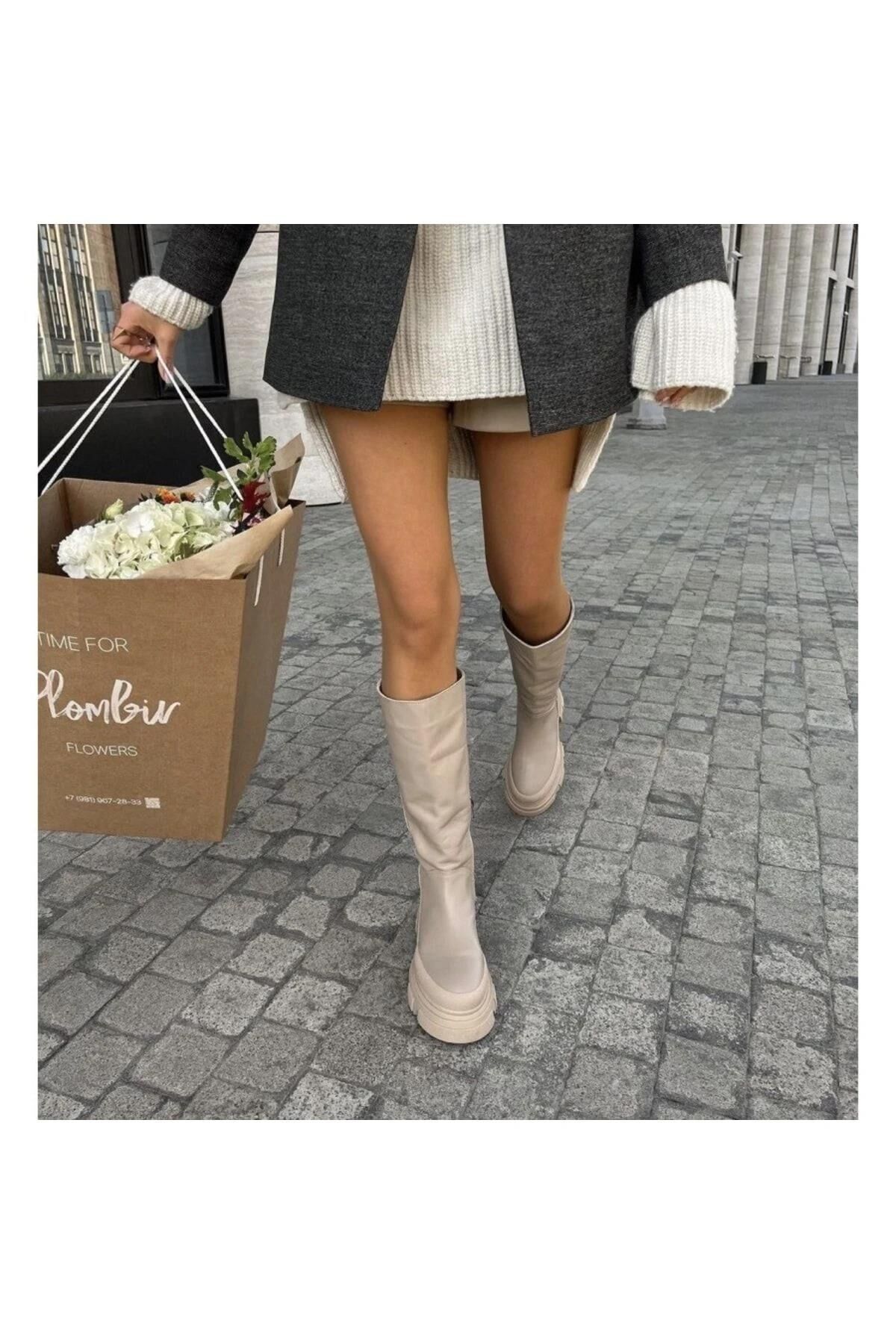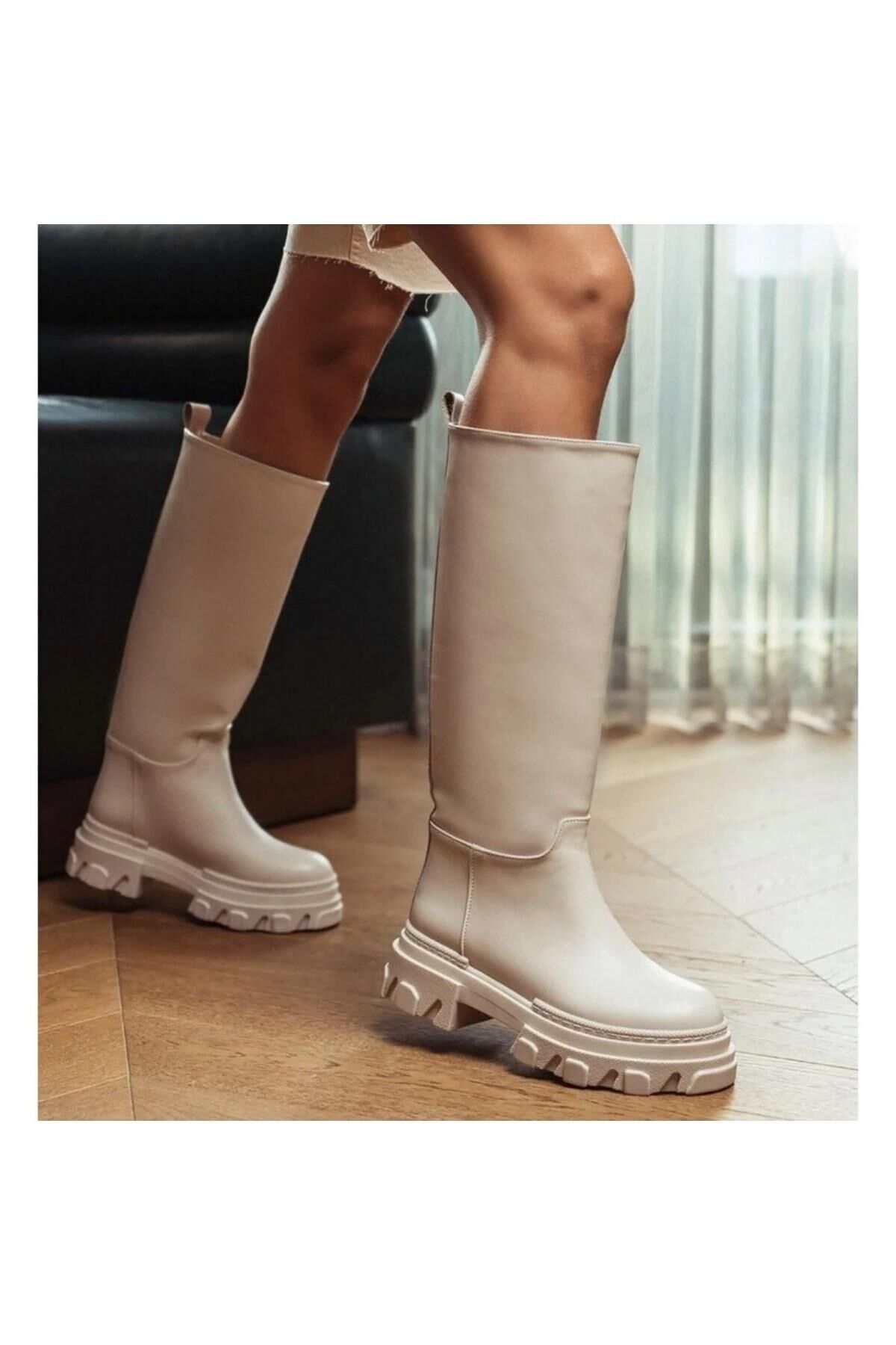 Jade Bej Mat Diz Altı Kalın Taban Kadın Çizme