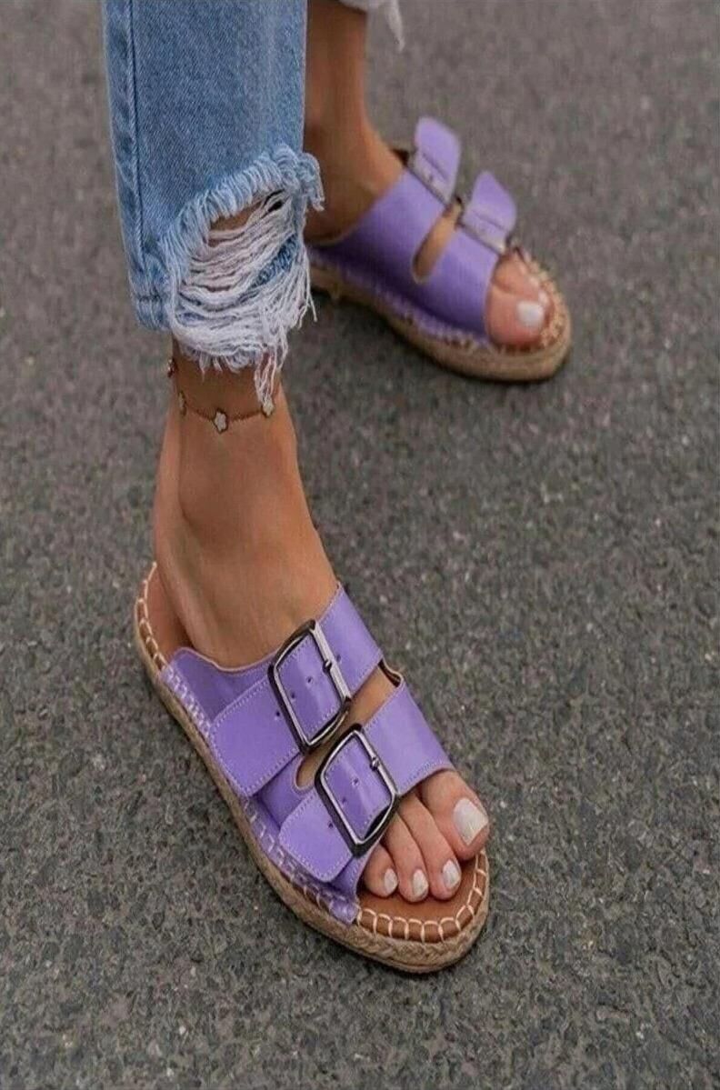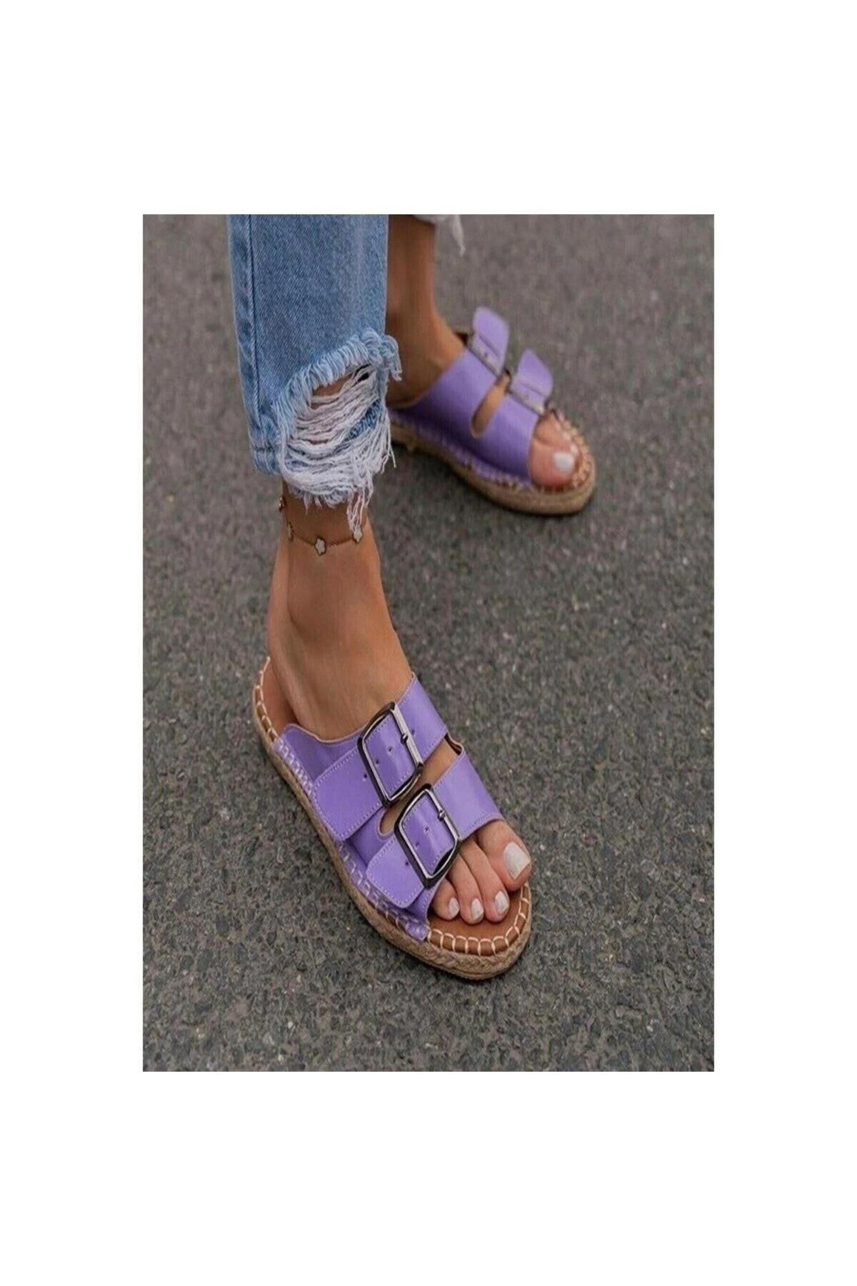 Kadın Deri Lila Blint Tokalı Terlik