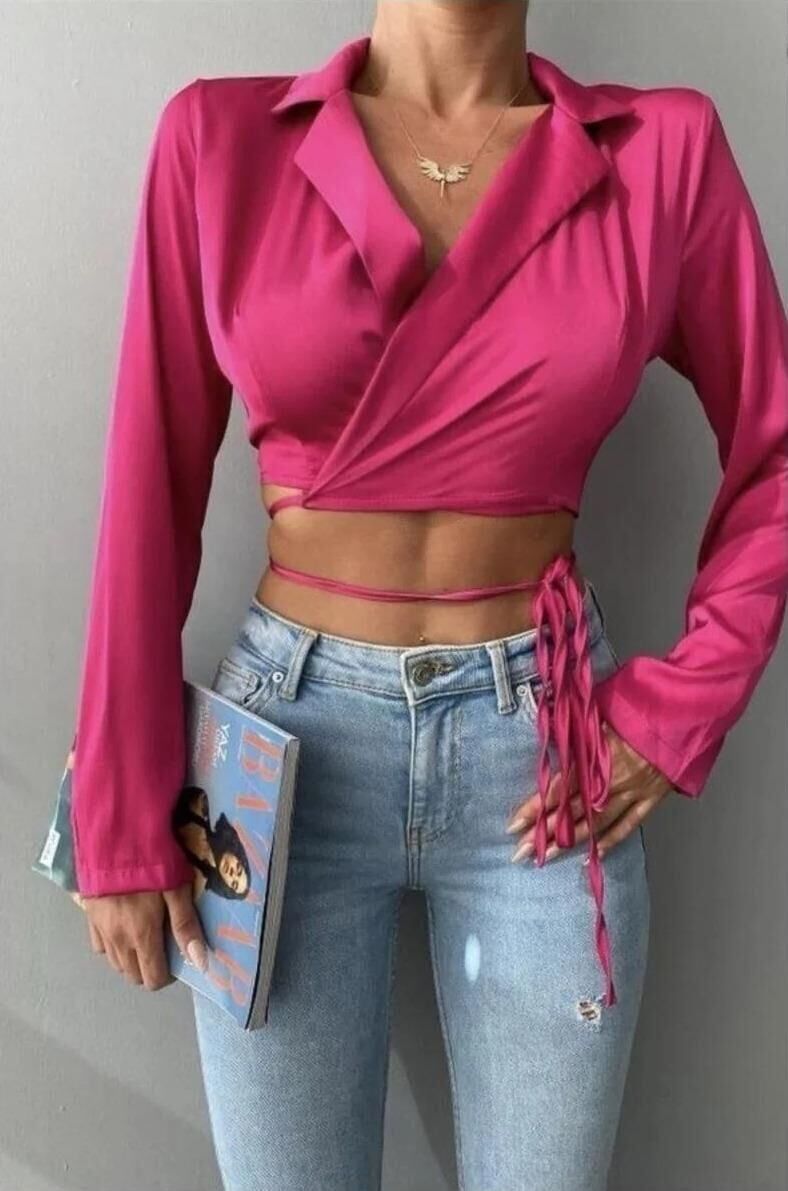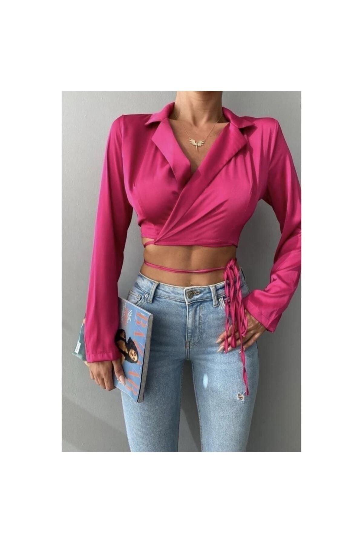Kadın Fuşya Pembe İp Bağlamalı Gömlek