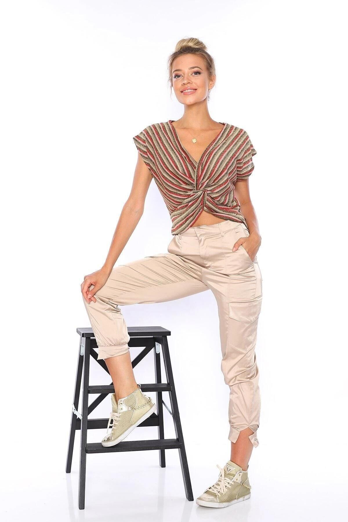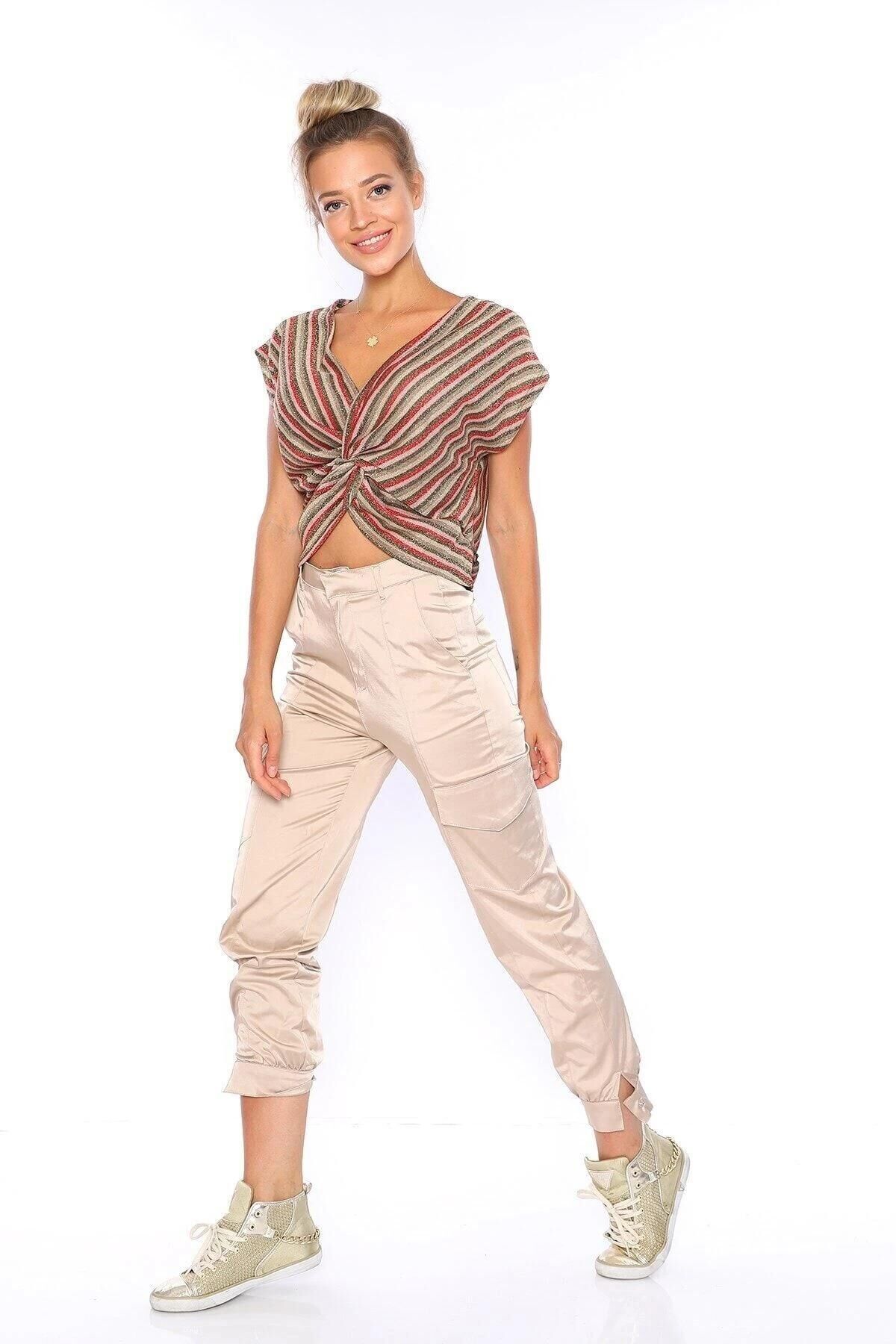 Kadın Pudra Pamuk Saten Kargo Pantolon Pra-469252-141646