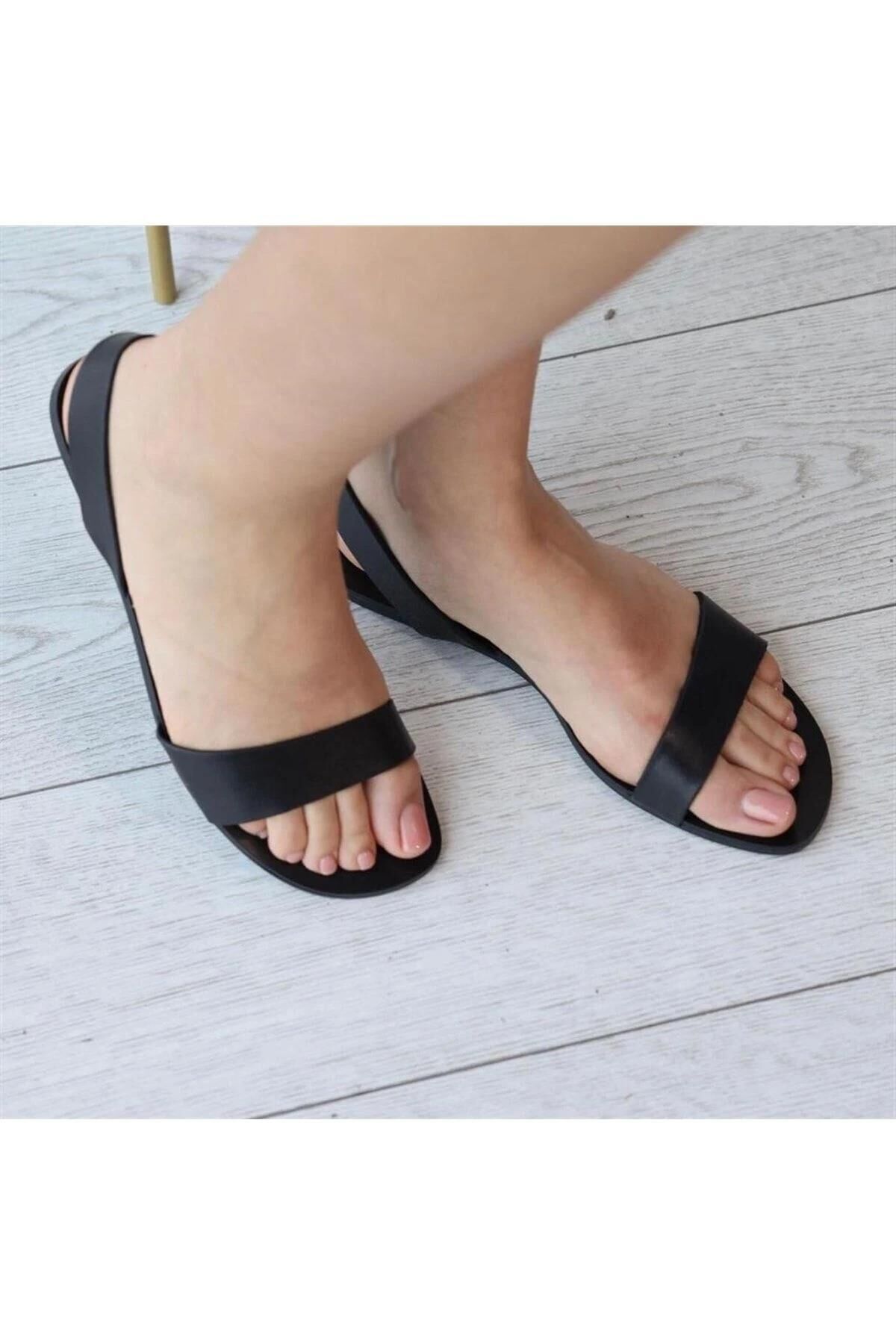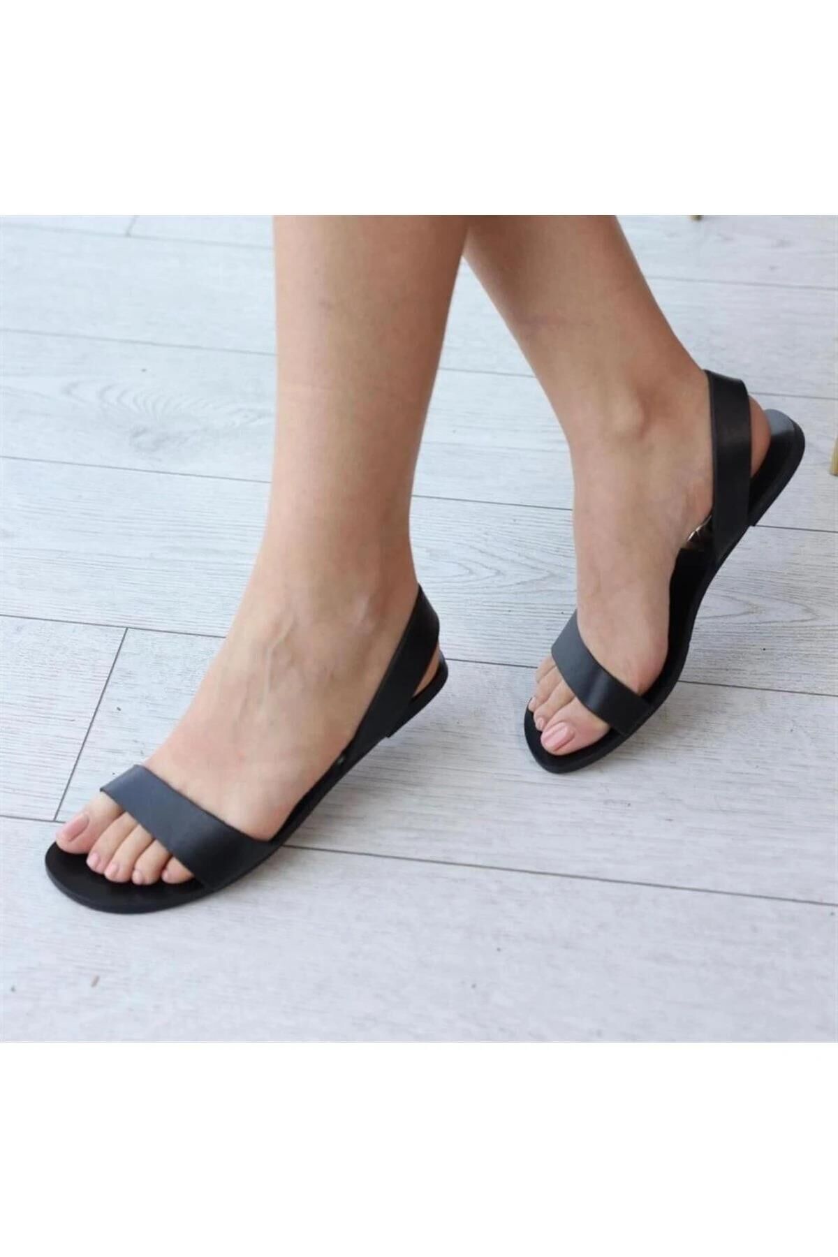 Kadın siyah deri sandalet, yüksek kaliteli deri dokusu ve minimalist tasarımıyla yaz stilinize hem konforlu hem de prestijli bir dokunuş katar.
