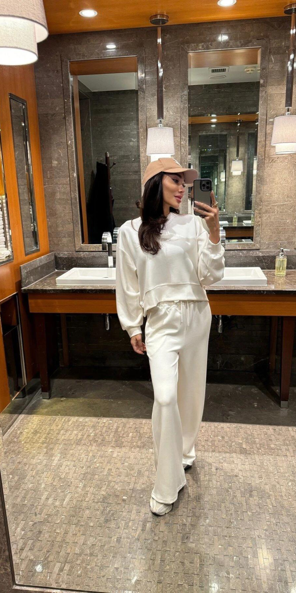 Yumuşak ve esnek modal dokusuyla gün boyu konfor sunan şık bir eşofman takımıdır. Günlük kombinlerde sneaker ve minimal aksesuarlarla rahat ve modern bir görünüm sağlar.