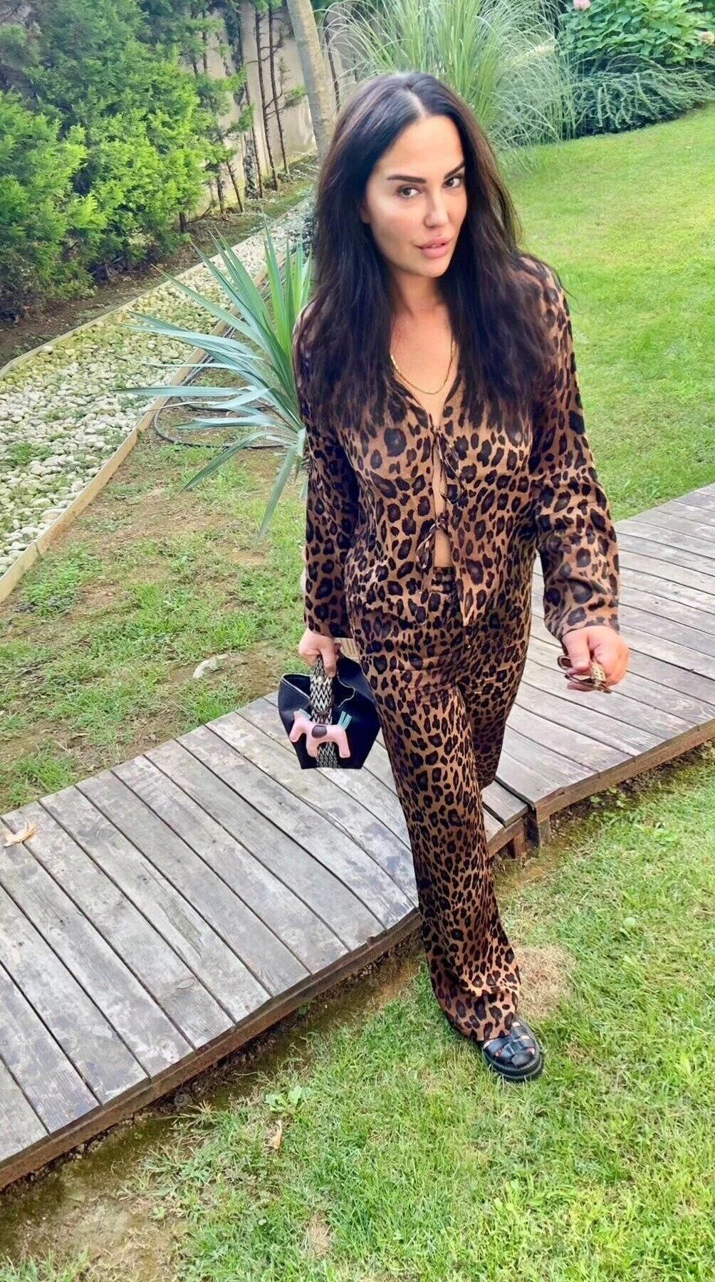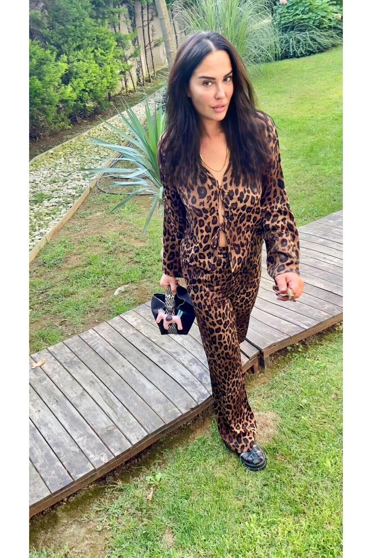 Yumuşak saten dokusu ve leopar deseniyle dikkat çekici ve feminen bir stil sunan takım tasarımıdır. Topuklu ayakkabı ile şık davet kombini, sneaker ile günlük iddialı bir görünüm oluşturabilirsiniz.