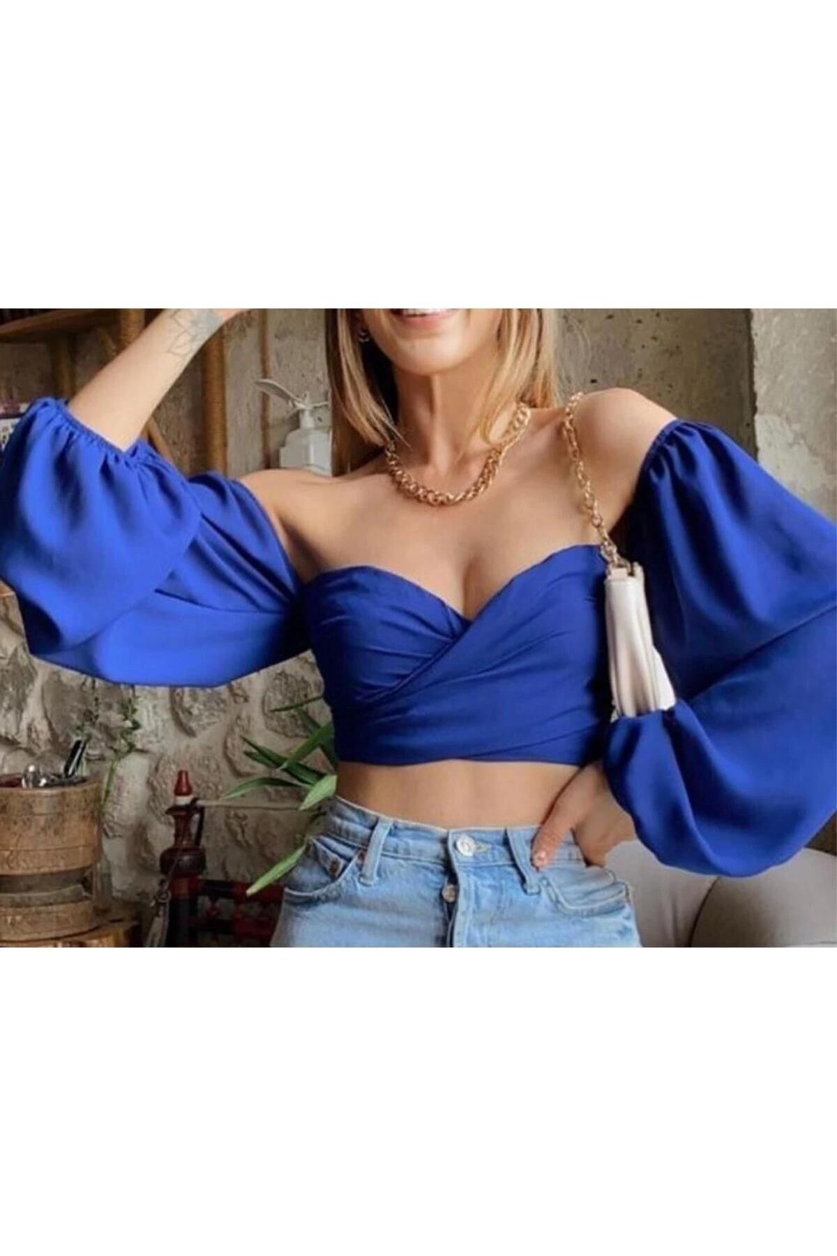 Mavi Arkası Gipeli Crop Top Bluz