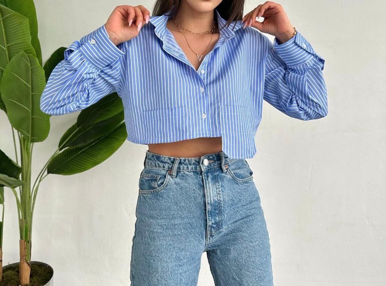 Mavi çizgili deseniyle zamansız bir görünüm sunan pamuk crop gömlek, nefes alan yapısıyla gün boyu konfor sağlar. Yüksek bel jean, şort veya eteklerle kombinlenerek hem şehir stilinde hem hafta sonu kombinlerinde rahatlıkla tercih edilebilir.