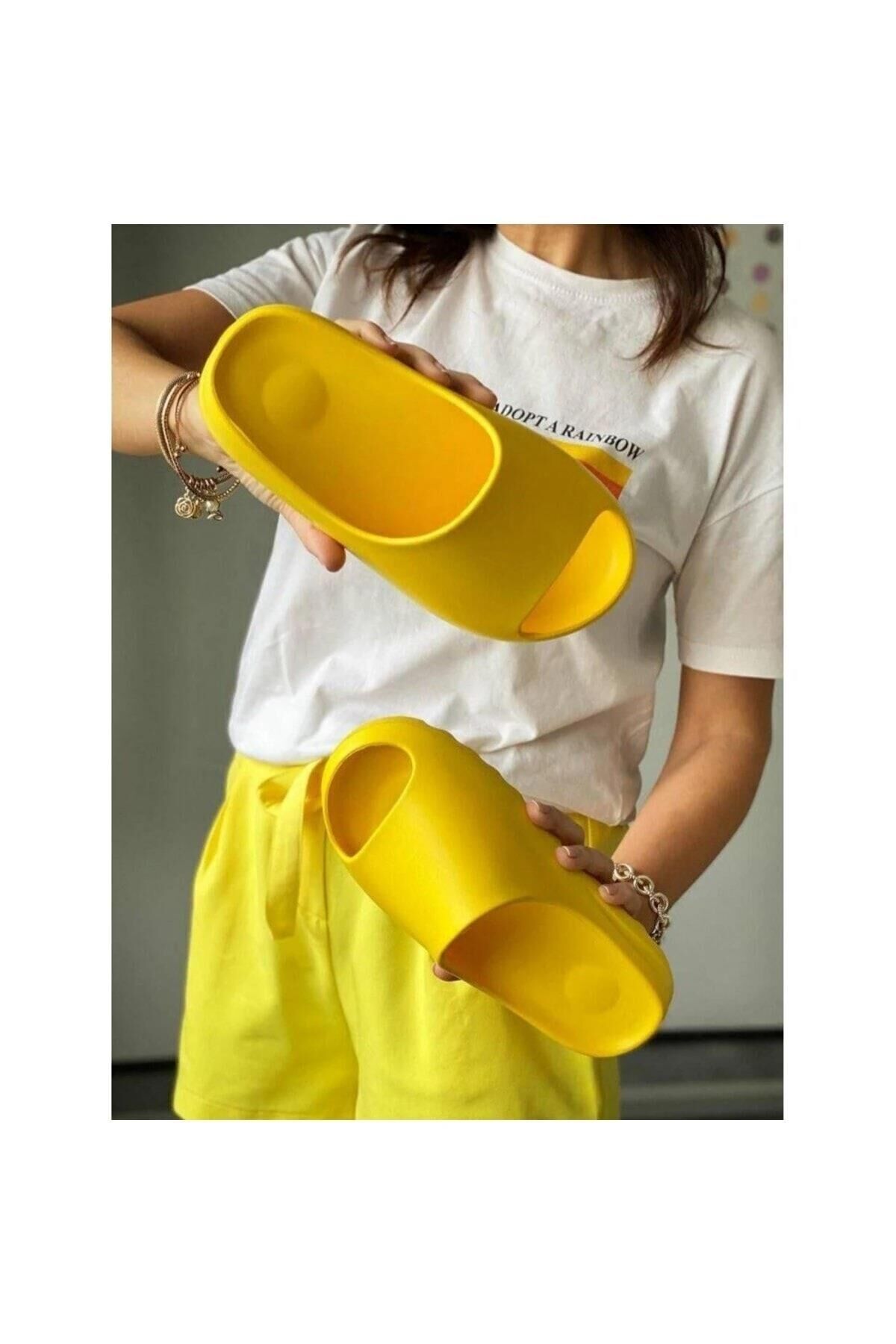 Sarı slipper terlik, enerjik ve dikkat çekici rengiyle yaz kombinlerinize canlı bir dokunuş katar. Arkası açık tasarımı sayesinde hem pratik hem de modern bir kullanım sunar.