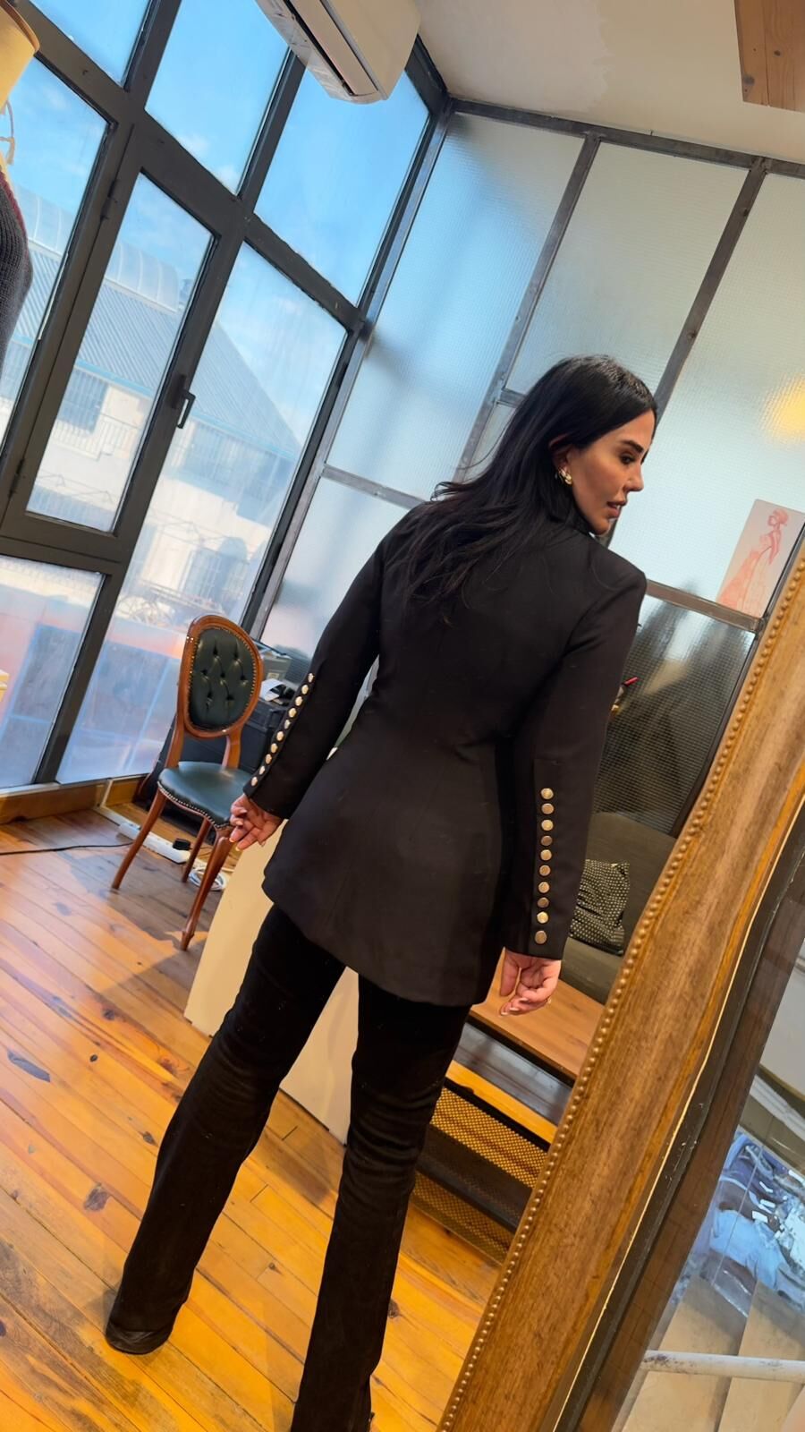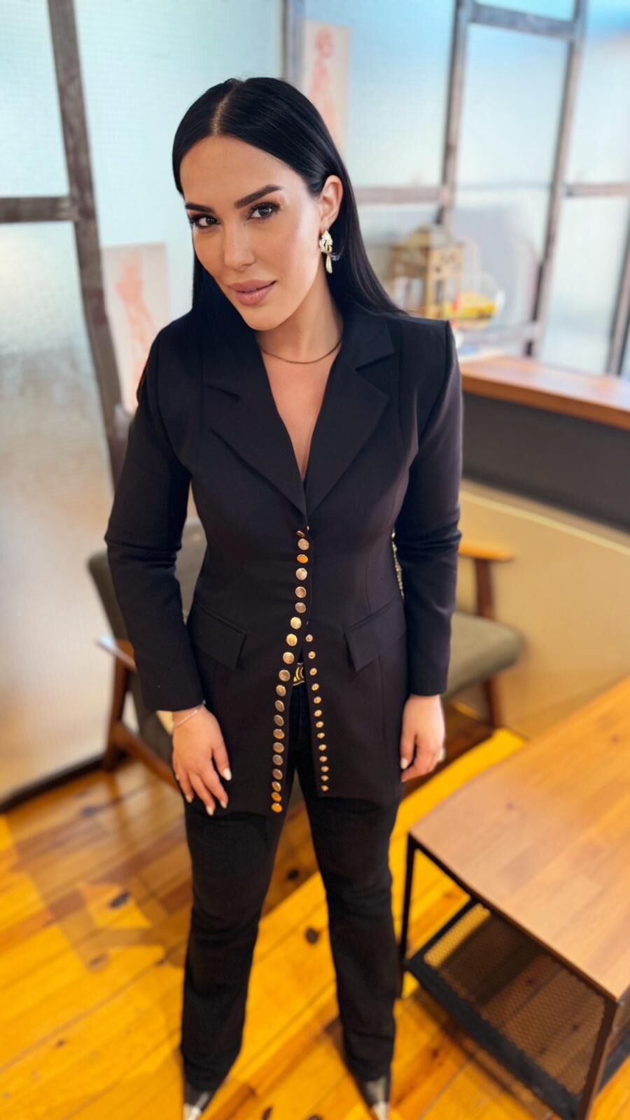 Siyah ÇıtÇıtlı Tasarım Kadın Ceket