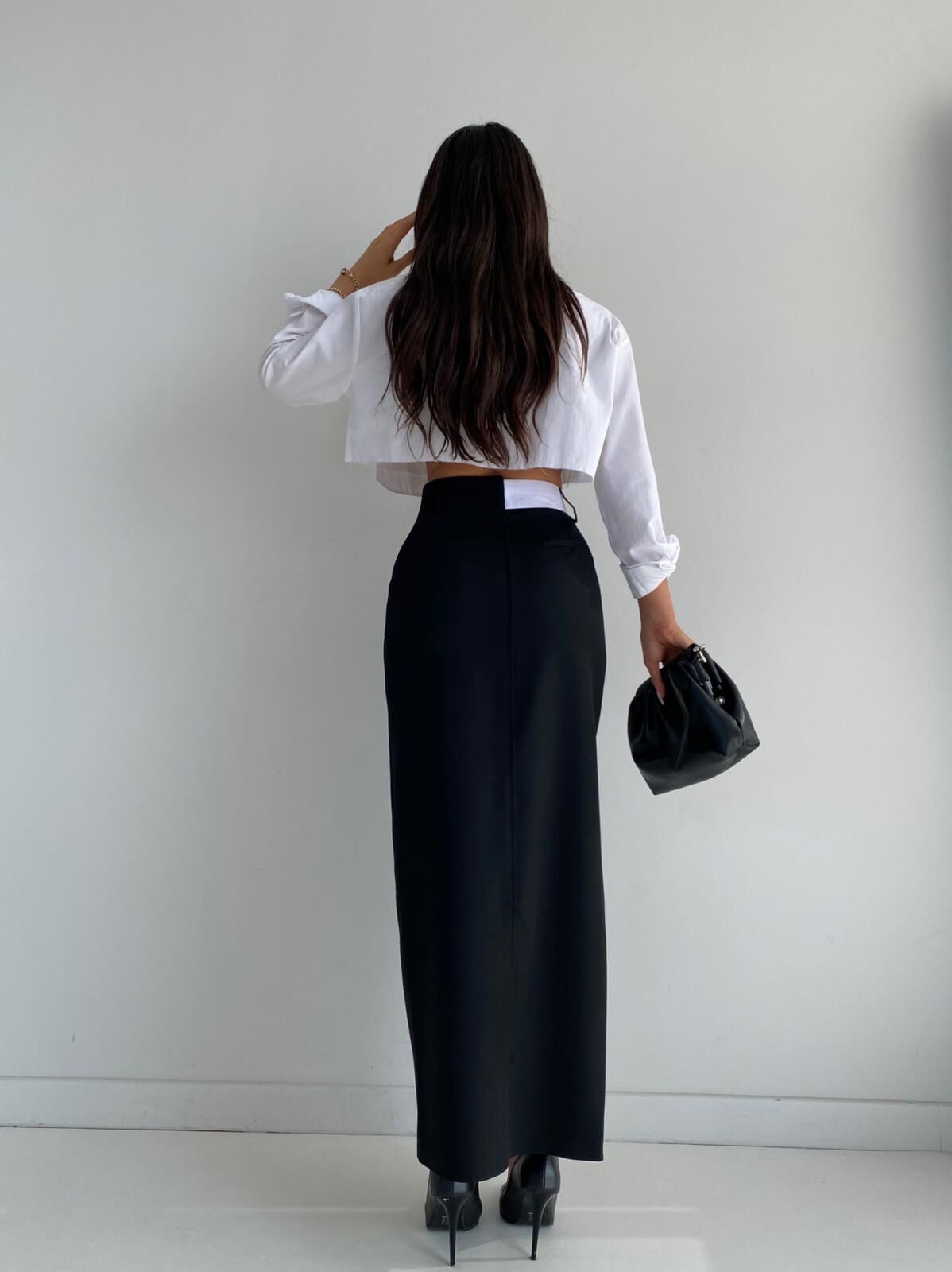 Siyah Çift Kemer Detaylı Önden Yırtmaçlı Etek