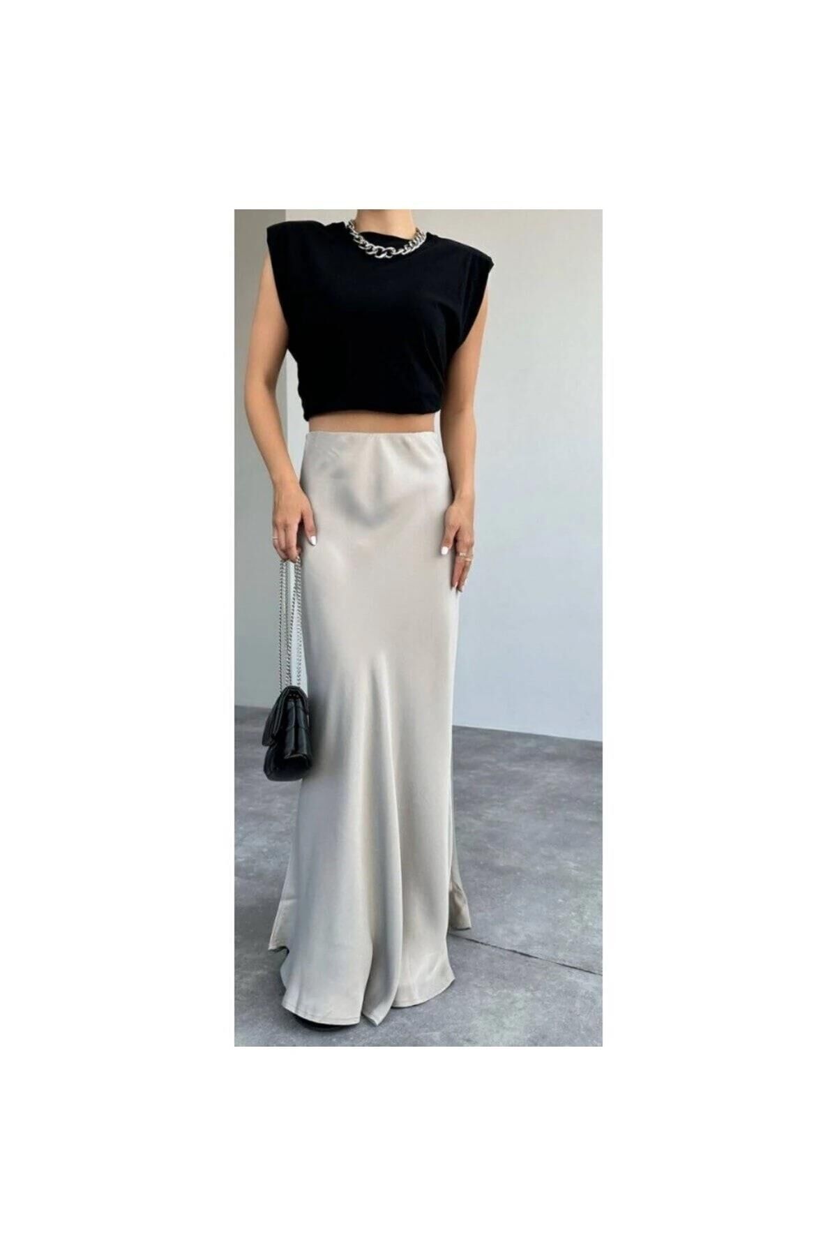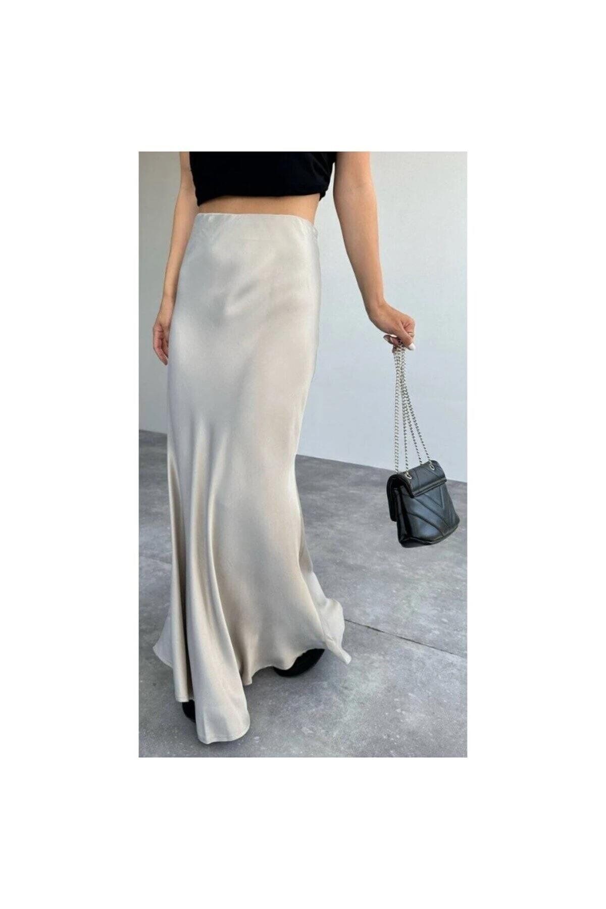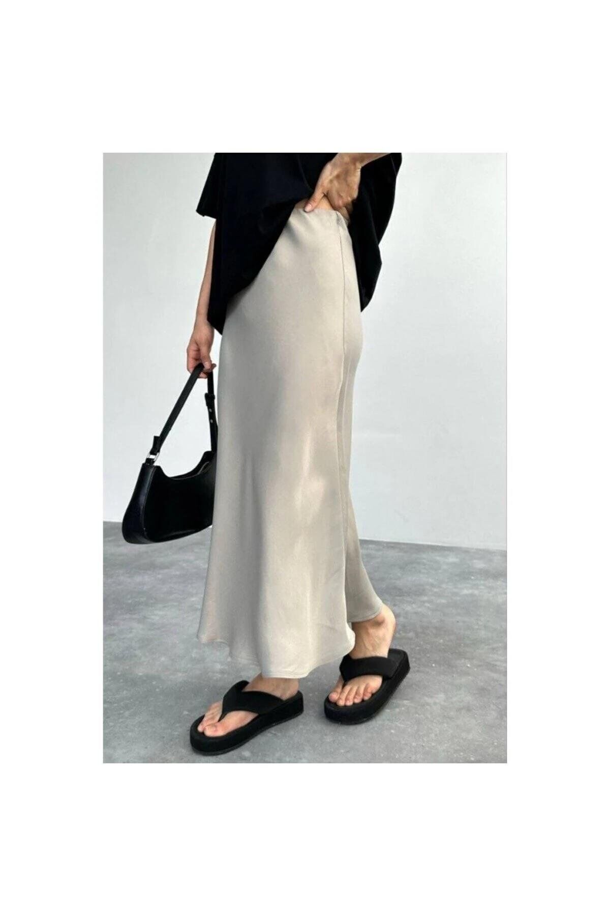 Taş rengi ve akıcı saten dokusuyla hem günlük hem davet kombinlerinde zarif bir görünüm sunar. Ton sür ton kombinlerde veya kontrast renklerle rahatlıkla kullanılabilir.