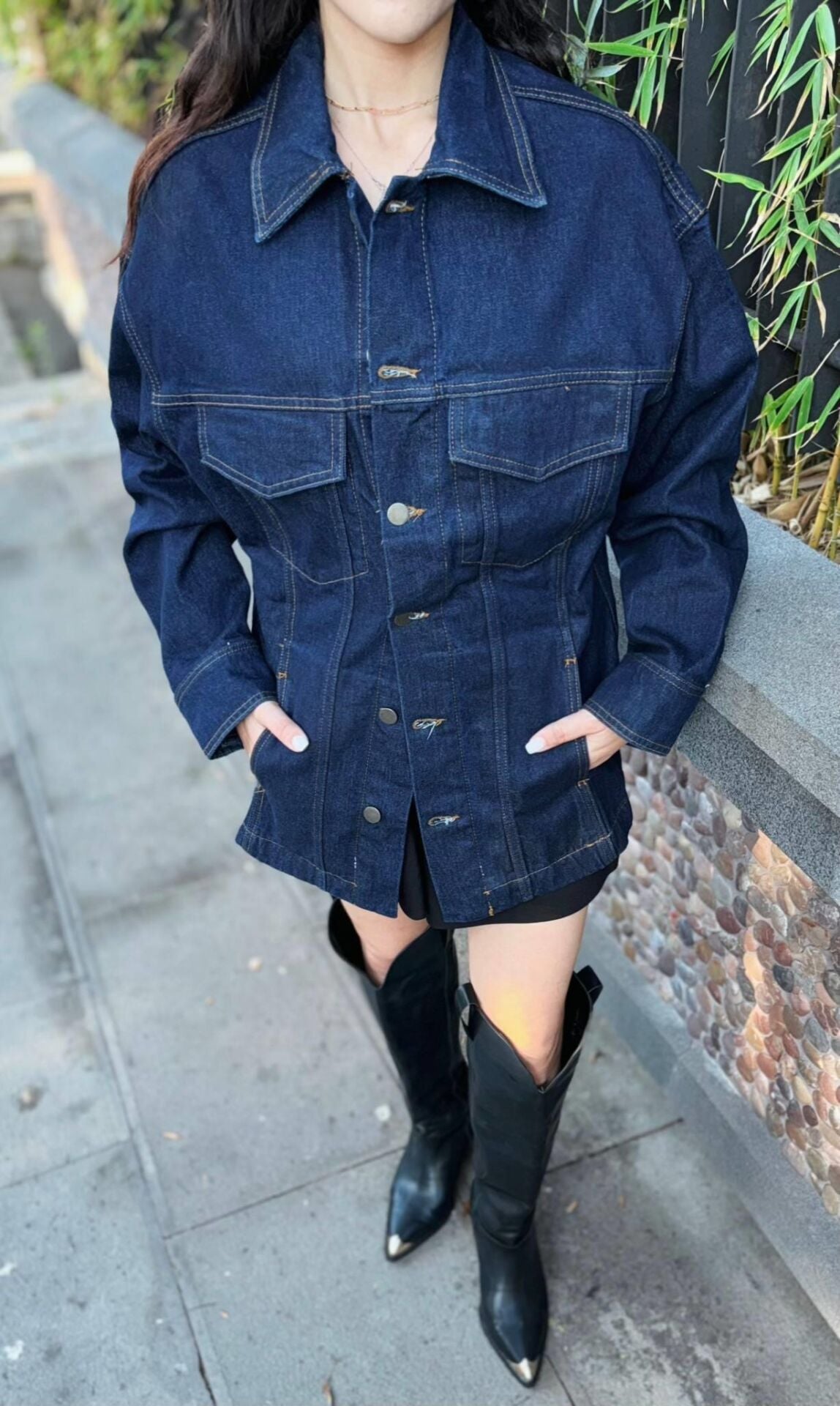 Belden oturtmalı kesimi ve dikiş detaylarıyla feminen ve güçlü bir silüet sunan denim ceket modelidir. Elbise, etek veya pantolonlarla kombinlenerek günlük ve zamansız bir stil oluşturur.