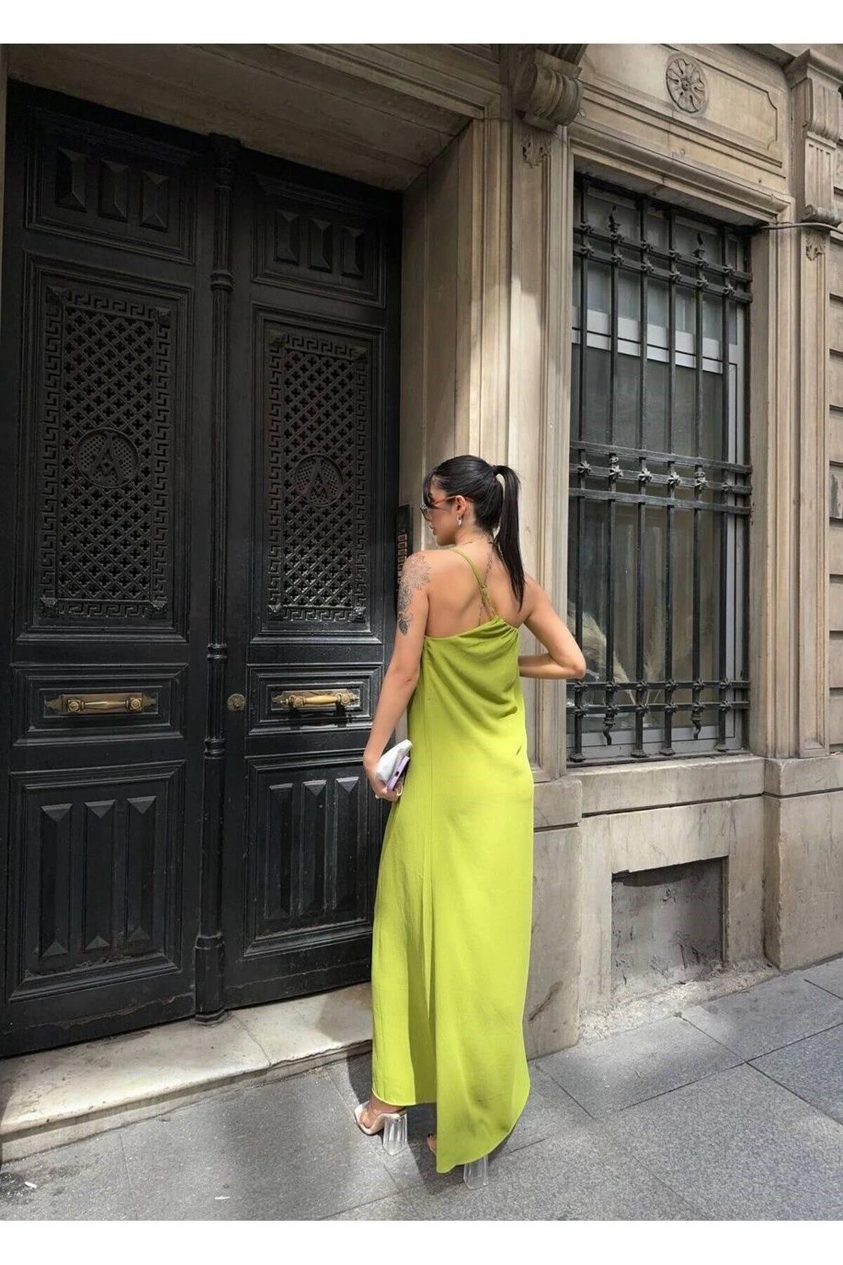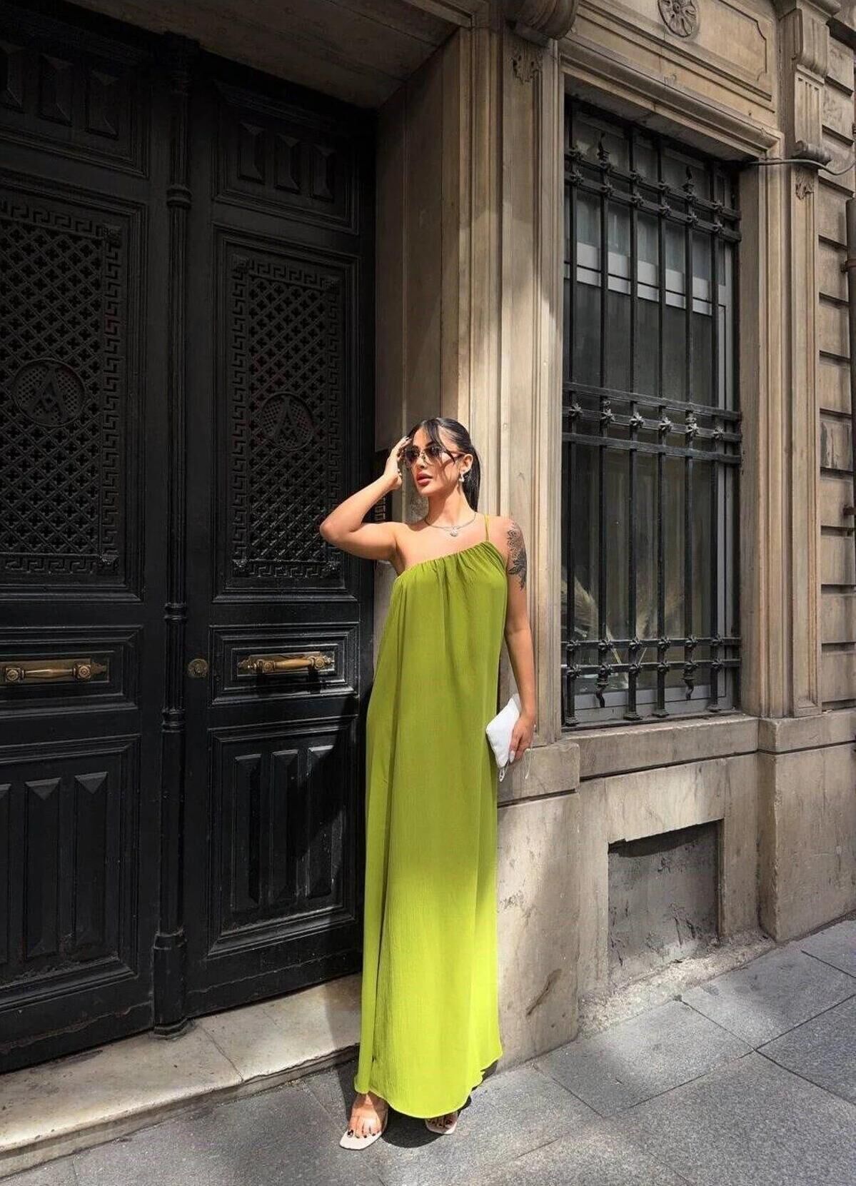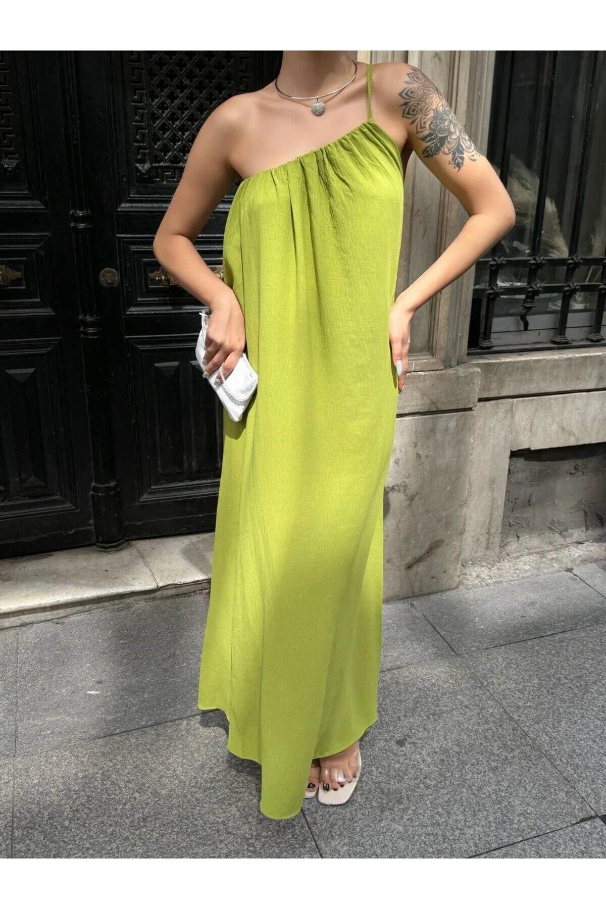 Doğal keten dokusu sayesinde nefes alan ve konforlu bir kullanım sunar. Tek askılı tasarımıyla yaz kombinlerine zarif ve modern bir dokunuş katar. Sandalet veya topuklu ayakkabılarla kombinlenerek hem günlük hem özel gün stilinde rahatlıkla tercih edilebilir.