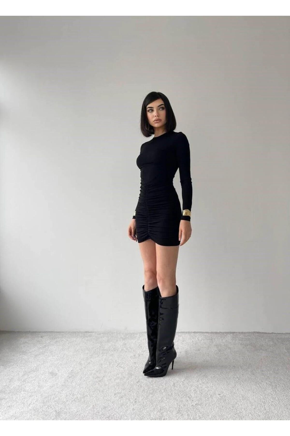 Likralı toparlayıcı kumaşıyla vücudu sararak fit bir silüet sunan mini elbise tasarımıdır. Gündüz postallar ve denim ceketle, gece topuklu ayakkabı veya çizmelerle kombinlenerek iddialı bir görünüm sağlar.